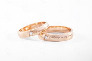 4. Khắc chữ ý nghĩa lên nhẫn cưới: Các từ như “Vĩnh cửu”, “Forever”, hoặc “Hạnh phúc” đều mang thông điệp tình yêu bền vững và lâu dài.