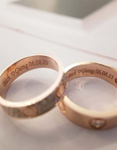 1. Khắc tên vợ và chồng lên nhẫn cưới: Đây là cách phổ biến và truyền thống nhất, giúp nhẫn cưới mang dấu ấn cá nhân của cả hai.