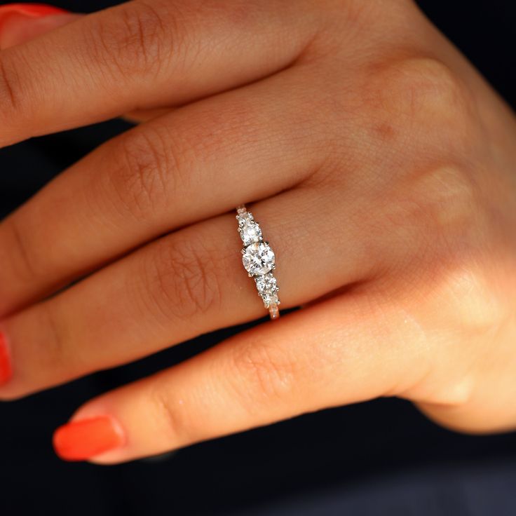 Thiết kế nhẫn FiveStone đặc biệt này gây ấn tượng bởi sự đối xứng từng viên đá, tạo nên vẻ đẹp hoàn hảo.
