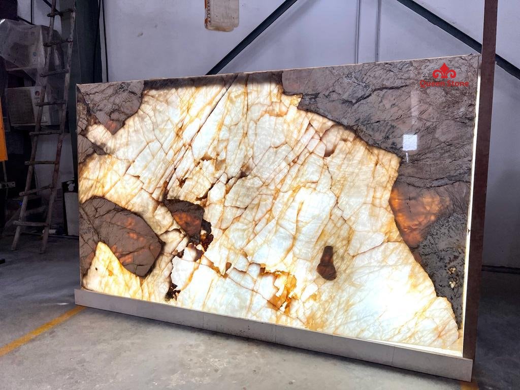 Đèn trang trí: Đá được cắt thành các mảnh mỏng, cho phép ánh sáng xuyên qua để tạo ra hiệu ứng màu sắc rực rỡ và ấm áp, được dùng làm chao đèn, đèn ngủ, hoặc đèn trang trí tường.