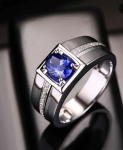 Nhẫn vàng trắng đính đá Sapphire xanh biển: Phù hợp người làm quản lý hoặc đầu tư.