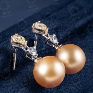 Nữ tính và dịu dàng là cảm giác mà bông tai ngọc trai kết hợp cùng kim cương vàng đem đến cho người đeo. Thiết kế thể hiện hình ảnh một người phụ nữ kiên cường rực rỡ, tựa như năng lượng tự tin và rạng ngời của biển cả. Đây sẽ là một lựa chọn vô cùng tinh tế dành cho các nàng thơ ưa chuộng vẻ đẹp trang nhã đấy.