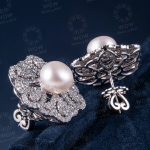 Sản phẩm bạn đang xem là sản phẩm thiết kế độc quyền bởi WOW, ngọc trai và kim cương được xếp theo hình dáng hoa, lá và được đính trên khung bông tai kim loại. Những thiết kế này mang lại sự tinh tế, nữ tính và đẹp mắt cho người đeo.