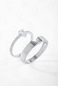 Nhẫn cưới kim cương là tín vật đại diện cho tình yêu vĩnh cửu và khẳng định tình cảm của phái nam dành cho người phụ nữ của đời mình. Cặp nhẫn cưới kim cương F125 sở hữu thân nhẫn thiết kế trơn được khoét lồng ghép viên chủ giọt nước độc đáo tạo cảm giác hòa hợp, thể hiện sự thủy chung, lâu bền. Nhẫn nữ được nạm kim cương tấm ở hai bên đai nhẫn tạo nên vẻ kiêu kỳ, sang trọng và lạ mắt dành cho các cô nàng có gu thẩm mỹ thích sự sáng tạo và khác biệt.