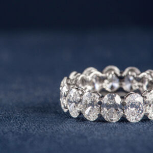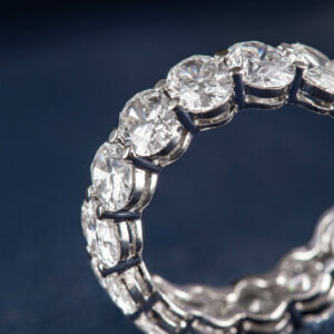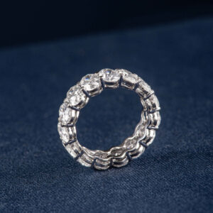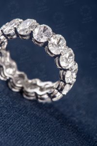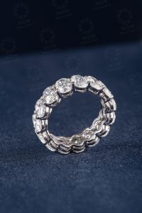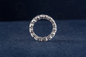 Nhẫn band full vòng kim với thiết kế kết hợp kim cương tấm và vàng độc đáo tạo nên một mẫu nhẫn sang trọng mà phát cách.