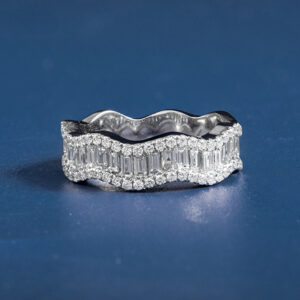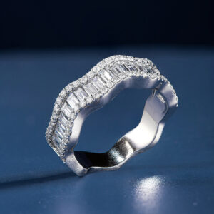 Một band nhẫn theo phong cách Eternity phù hợp với các anh chàng bản lĩnh, cá tính và yêu thích sự tự do linh hoạt. Thay vì chiếc nhẫn có viên chủ ở giữa truyền thống, kiểu nhẫn này giúp bạn trẻ trung và hoạt bát hơn.