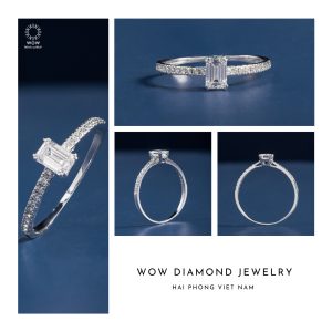 Nhẫn đính hôn kim cương hình chữ nhật nổi bật với vẻ đẹp sắc sảo và hiện đại. Viên kim cương hình chữ nhật, hay còn gọi là kim cương emerald cut, mang đến vẻ đẹp tinh tế và sang trọng. Thiết kế này thường có các đường cắt sắc nét và không có sự lấp lánh quá mức, làm nổi bật sự thuần khiết và độ tinh xảo của viên đá. Đây là lựa chọn lý tưởng cho những ai yêu thích sự thanh thoát và trang nhã.